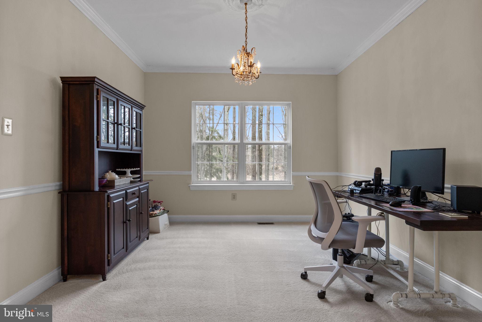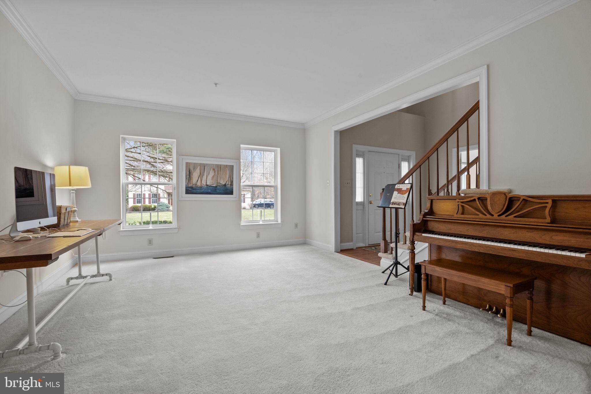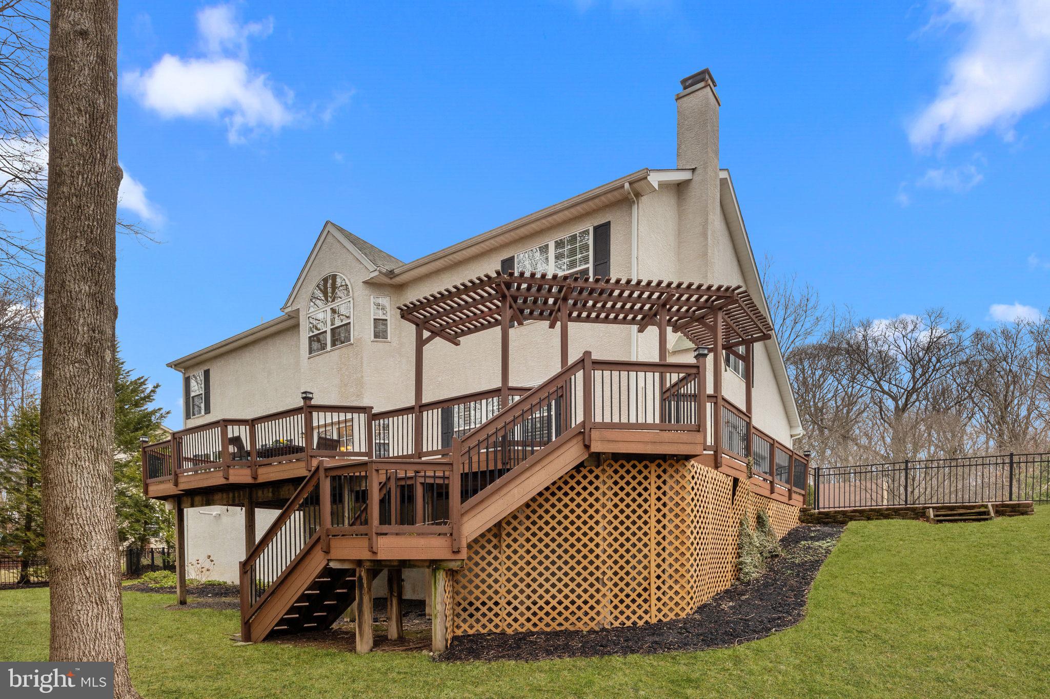 Nestled in the sought-after Ridings of Buckingham and within the highly acclaimed Central Bucks School District, this brick-front single-family home offers a perfect blend of comfort and versatility. With 4 bedrooms plus a potential 5th bedroom in the fully finished walkout basement, this home is ideal for a growing family or multi-generational living. The basement boasts a full kitchen with stainless steel appliances and a full bathroom, making it an excellent option for a potential in-law suite or private guest quarters. The main floor features a private home office, gracious Living Room and Dining Room combination, adorned with crown molding, while the Dining Room is further enhanced by chair rail detailing, adding a touch of sophistication. The kitchen is a chef's delight, boasting ceramic tile floors, newer stainless steel appliances, quartz countertops, and a stylish backsplash. Enhanced by under-cabinet lighting and a spacious center island, it offers both elegance and functionality for cooking and entertaining. The heart of the home is the inviting Family Room, complete with a wood-burning fireplace, recessed lighting, and surround sound--perfect for cozy evenings or entertaining. Adjacent to the Family Room, the laundry room provides added convenience, featuring a door to the driveway for easy access. A powder room with access to the 2-car garage further enhances the functionality of the main level. A French door from the kitchen leads to the maintenance-free deck, which overlooks the fenced-in yard with a serene wooded backdrop. The second floor features crown molding throughout, adding an elegant touch to the upper level. The Primary Suite offers a spacious sitting area, walk-in closets, and a full bathroom featuring a double sink vanity, a relaxing jacuzzi tub, a stall shower and ceramic tile flooring. Three additional bedrooms and a full hall bathroom complete the second floor. Ceiling fans are thoughtfully installed throughout the home for year-round comfort. Additional highlights include a 2-car side-entry garage and a prime location within a community setting. Additional highlights include a 2-car side-entry garage, a prime location within a community setting, and a 1-year home warranty for added peace of mind. This home seamlessly combines functionality and style, making it the perfect place to create lasting memories. Its prime location offers convenience and accessibility, being close to shopping, restaurants, parks, museums and the charming Doylestown Borough, ensuring a lifestyle that balances relaxation and modern amenities.